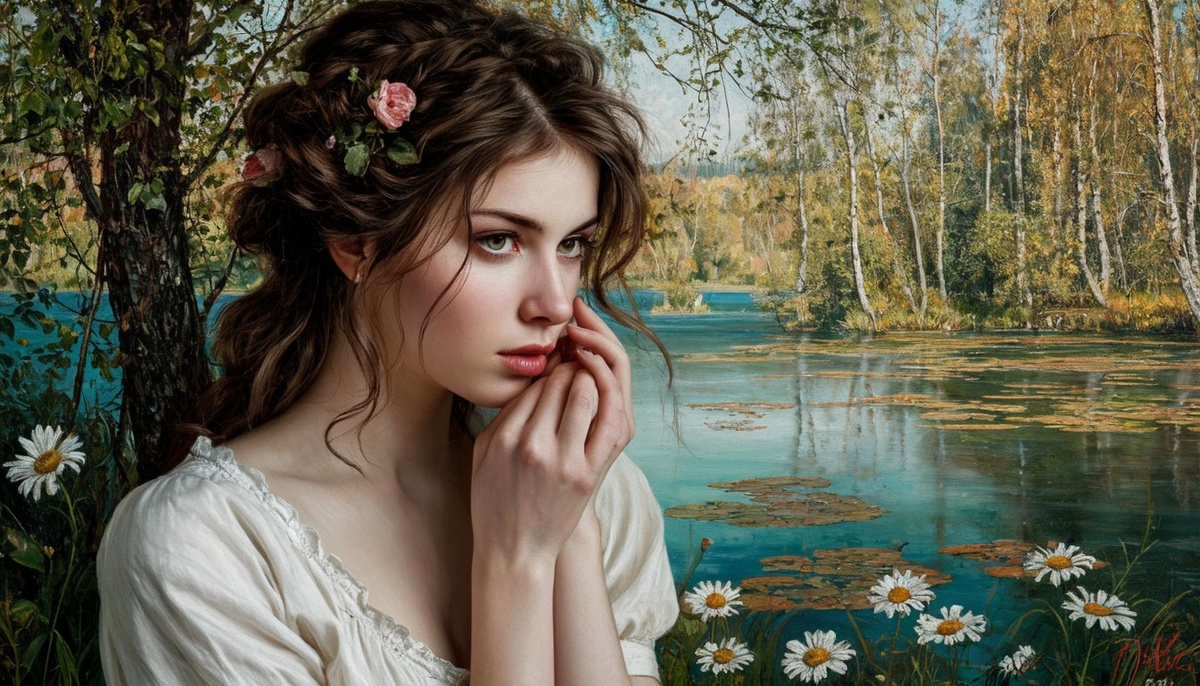 Мадемуазель Грета расположилась на берегу шумного ручья в окружении сочной зелени. Эта женщина слыла особой на редкость впечатлительной, если не сказать – истеричной. Ее натура напоминала фейерверк: любая случайность высекала искру, и Грета взрывалась каскадом эмоций, заставляя окружающих то испуганно моргать, то восхищенно улыбаться этой непредсказуемой буре.
