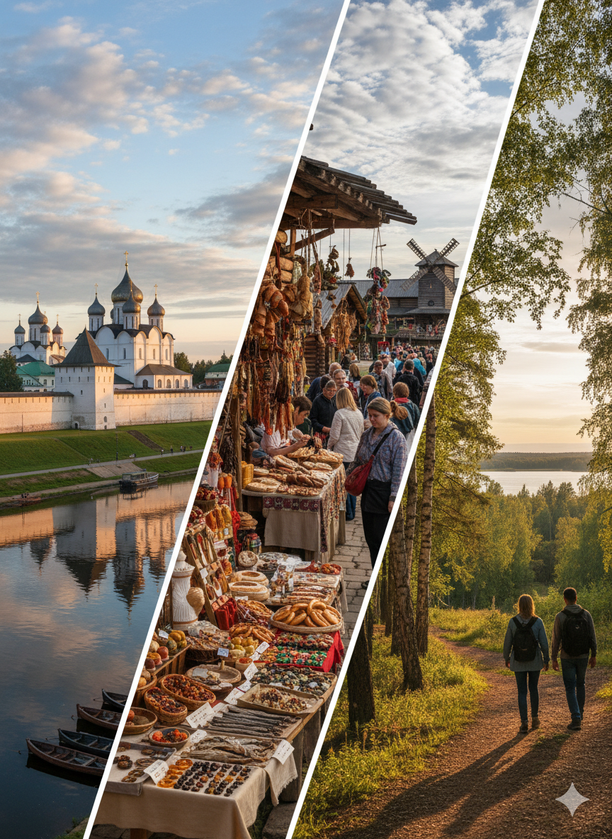 - Когда лучше всего приехать в Великий Новгород? Лето и ранняя осень — идеальное время: зелень, длинный световой день, все объекты открыты. Зима тоже хороша — снежный кремль выглядит сказочно, а туристов почти нет.