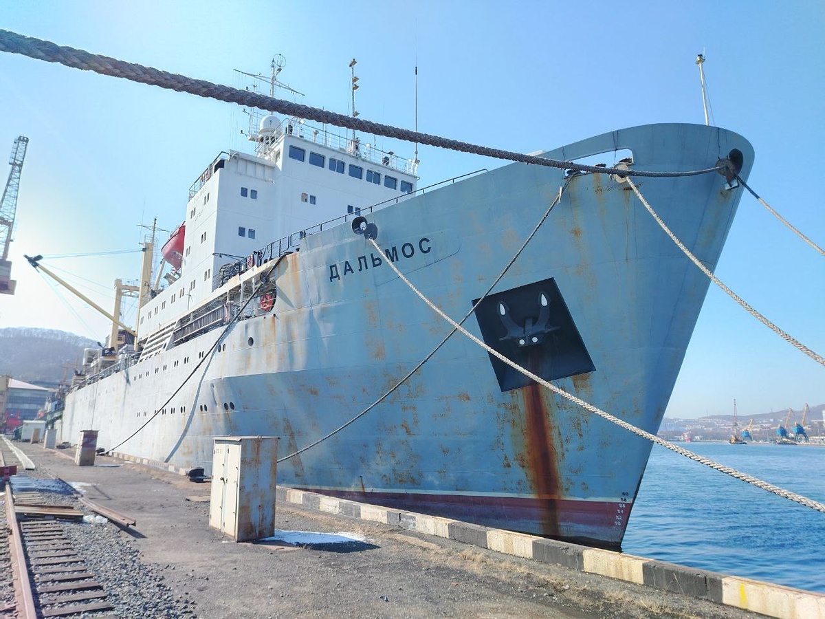 На стоянку перед доковым ремонтом на территорию ООО "Судоремонтный комплекс - Приморский завод" прибыла плавбаза "Дальмос", принадлежащая