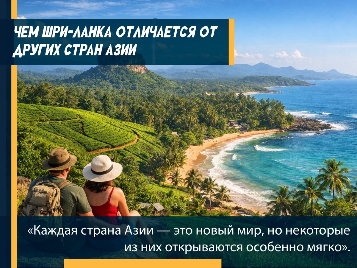 ✅ Шри-Ланка часто называют самой «сбалансированной» страной Азии для путешествий. Здесь на небольшом острове сочетаются океан, горы, джунгли и древняя культура. ✅ В отличие от крупных стран региона, расстояния короткие: за одну поездку можно увидеть пляжи, чайные плантации и национальные парки. ✅ Страна известна спокойной атмосферой и дружелюбием местных жителей — многие туристы отмечают, что здесь легче адаптироваться, чем в шумных мегаполисах Азии. ✅ Природа особенно разнообразна: от серфинга в Велигама до поездок по чайным холмам возле Нувара-Элия. ✅ А древние города вроде Сигирия показывают богатую историю острова. Шри-Ланка отличается тем, что объединяет в себе сразу несколько типов отдыха. Это направление, где можно одновременно исследовать культуру, наслаждаться природой и отдыхать у океана. Тур1 | поиск туров → https://tur-1.ru