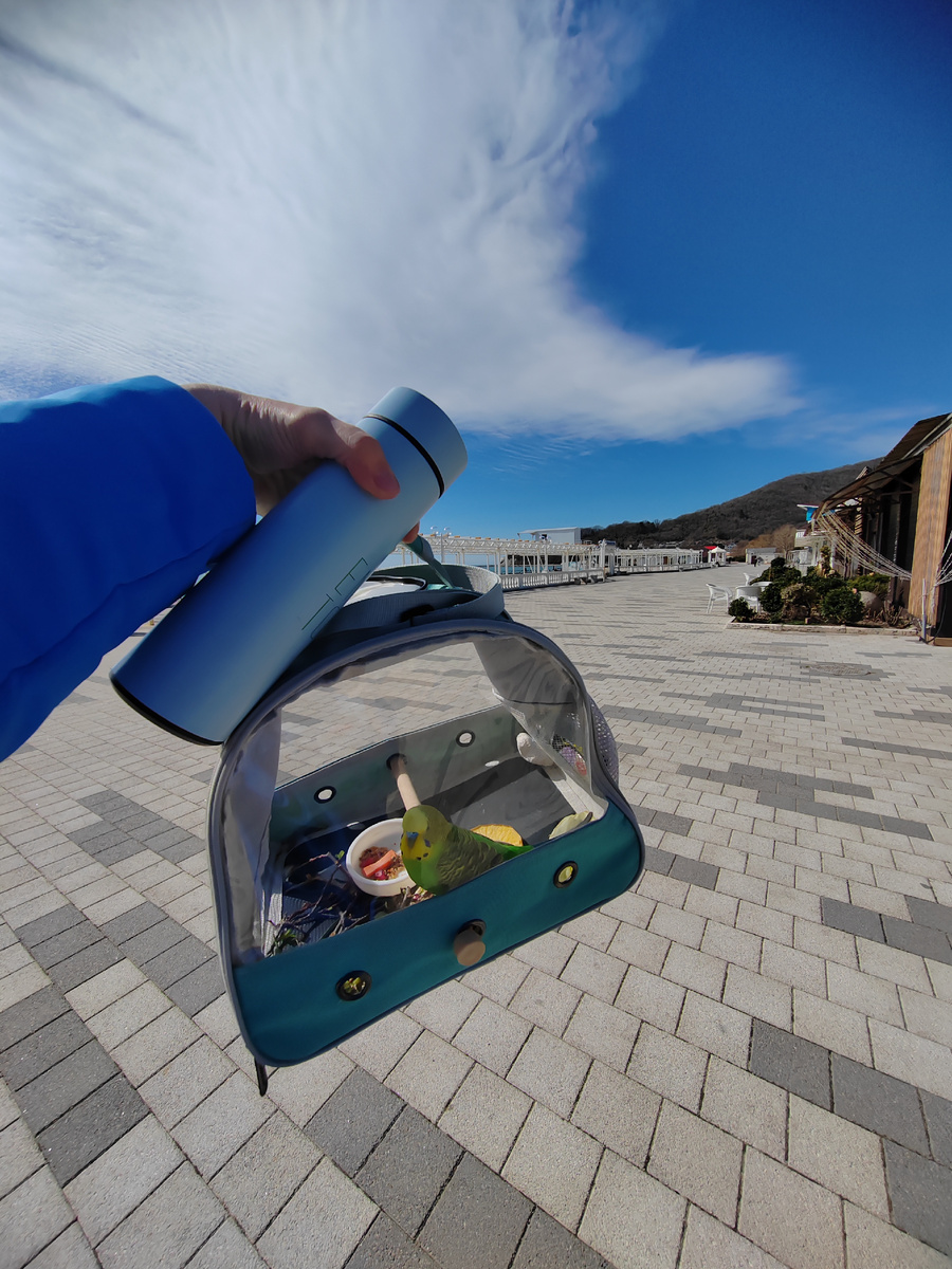 Через стекло кассир заметила, что путешествую с птицей.