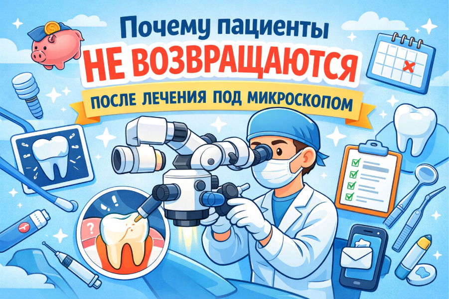 Когда врач объясняет, что лечение под микроскопом позволяет увидеть трещины и каналы, которые невидимы невооружённым глазом, и что это напрямую влияет на срок службы зуба — пациент понимает ценность. И эта ценность становится основой для долгосрочного выбора в пользу этой клиники.