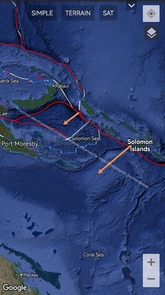 По зоне Соломоновых островов сегодня наблюдался более протяженный ОСТИ, дотягивающий уже до М7+