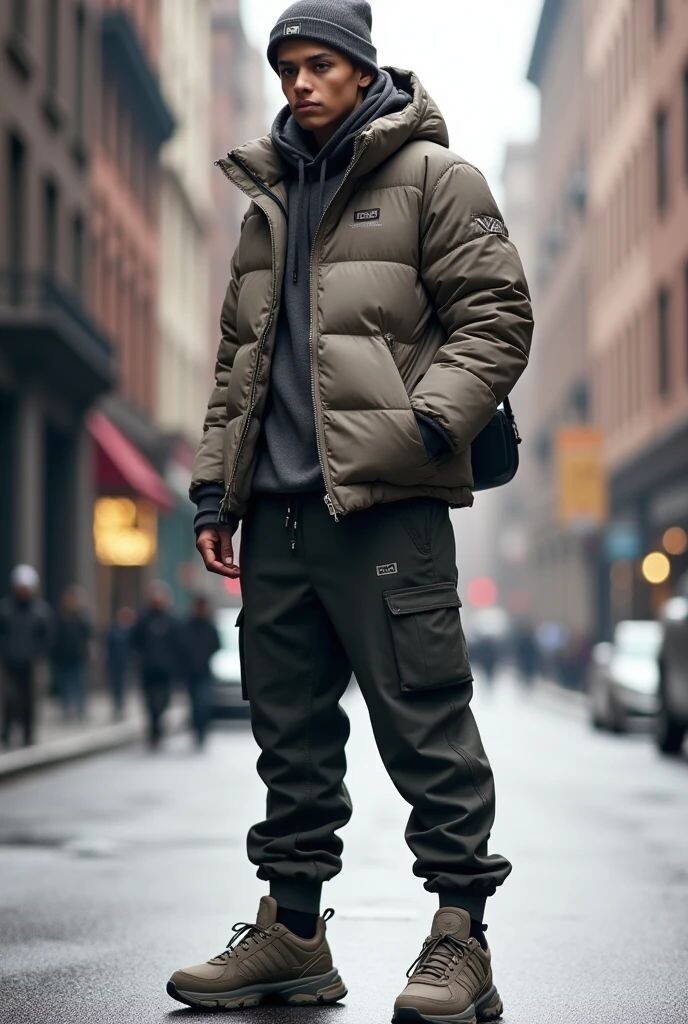 - Бежевые чиносы + белая футболка + тёмно‑синий худи + серые кроссы.