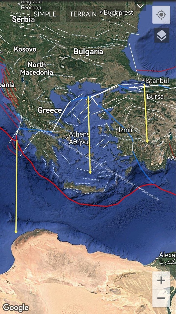 уровня М7, трассирующий северные границы Эгейской и Анатолийской плит. Ситуация в течение 9 дней рискует выйти за мягкий сценарий в виде серии только лишь М4-5+... ==== The cherry on the cake is the Greece-Turkey zone, where, in addition to the atypical transfer of clouds along the south-north axis from Africa, a CSTI of the M7 level was observed tracing the northern borders of the Aegean and Anatolian plates. There is a possibility of a strong earthquake in this area within 9 days.
