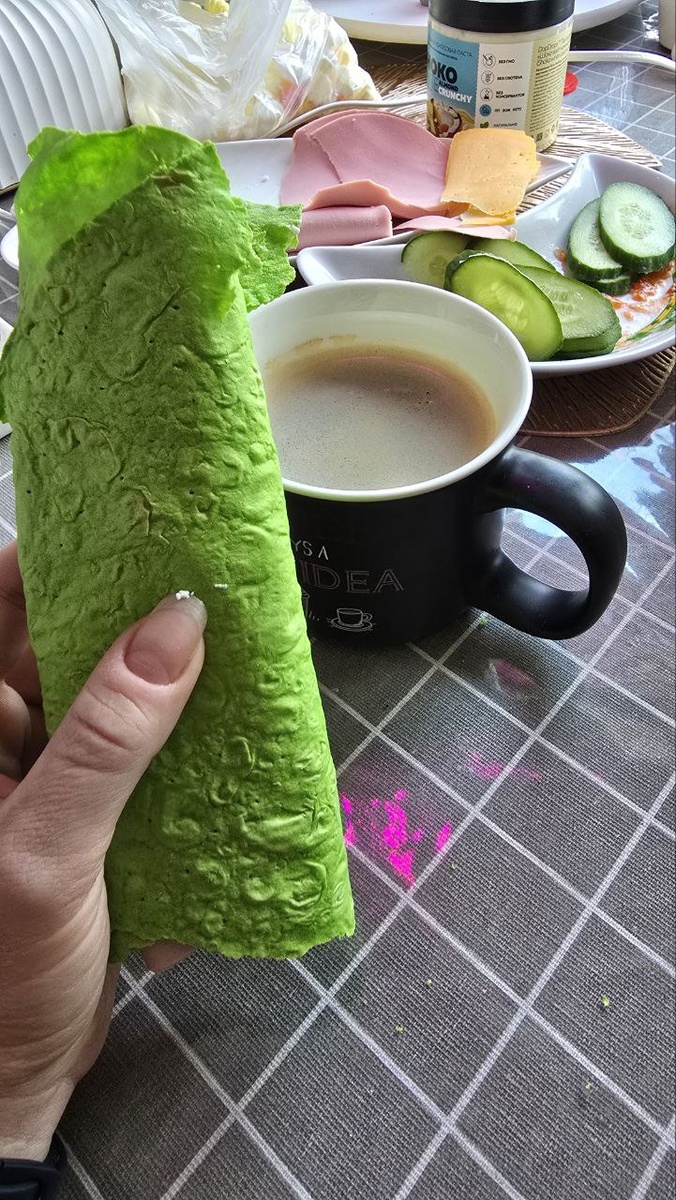 Времени на эстетику нет, быстрый завтрак с мужем и детим на тренировку.