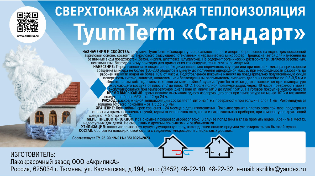 Это идеальный баланс цены, качества и удобства применения. Жидкая теплоизоляция TyumTerm «СтандартW» — выбор тех, кто ценит современные технологии, хочет сэкономить на энергоресурсах и при этом сохранить эстетику здания. Тонкий невидимый слой работает как термос, отражая тепло обратно в помещение зимой и не пропуская жару летом.