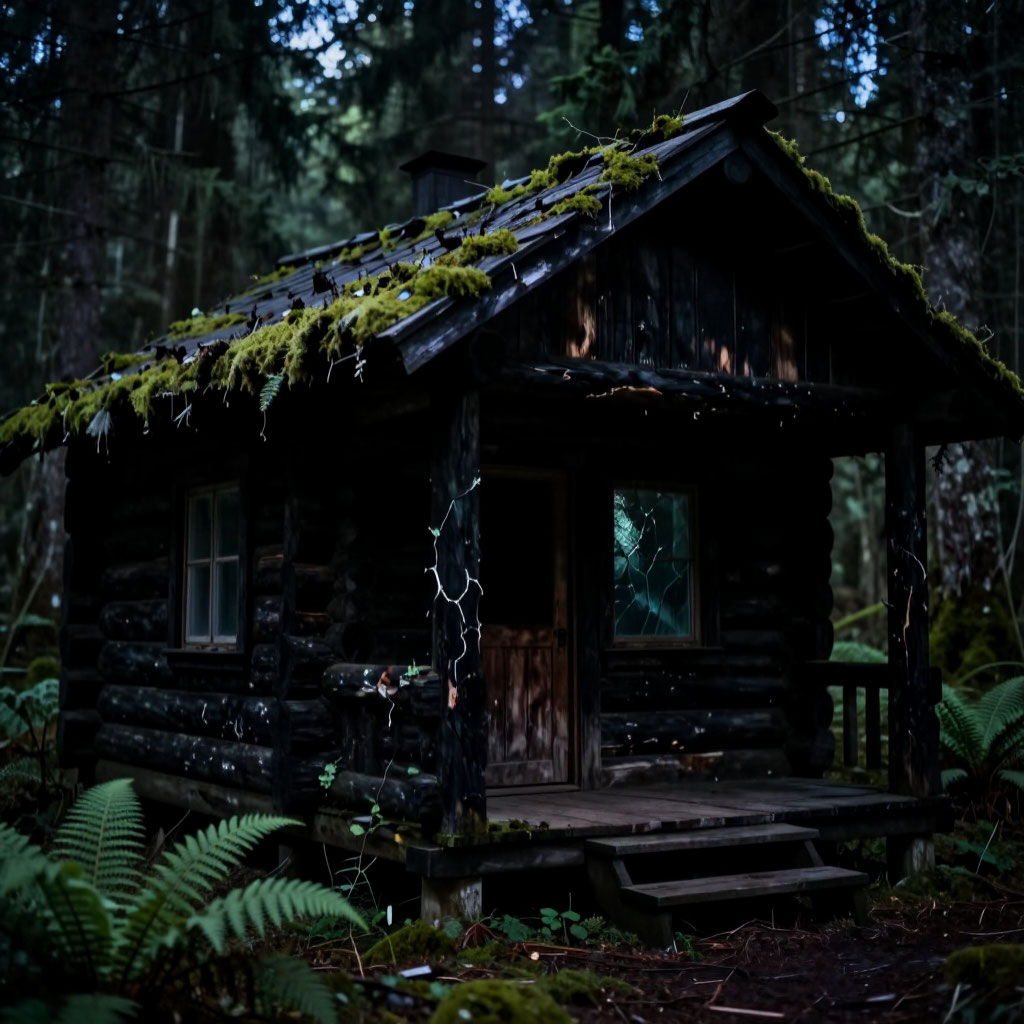 Артём выехал из города ещё затемно. Сперва дорога была нормальной — асфальт, потом грунтовка. А потом начались тропы, которые будто нарочно петляли между деревьями. GPS барахлил: то показывал одно место, то будто кружил по кругу. К вечеру он уже выбился из сил. Рюкзак давил, вода почти кончилась, а вокруг — ни души. Только деревья стояли стеной, и тишина такая, что даже птицы не пели. И вдруг — запах дыма. На круглой поляне, будто вырезанной из леса, стояла избушка. Ни тропинки, ни следов — просто возникла, как из ниоткуда. Брёвна тёмные, почти чёрные, в трещинах сочится смола. Крыша покосилась, поросла мхом, местами проломлена — сквозь дыры пробивались ростки папоротника. Дверь приоткрыта. Окно затянуто чем‑то мутным, похожим на рыбью чешую. — Есть кто? — крикнул Артём. Тишина. Он вошёл. Внутри полумрак, только от печи слабый свет. На столе — миска с дымящейся кашей, хлеб, кружка с травяным настоем. Рядом — лавка с одеялом. Запах ударил в нос: печёный хлеб, но с примесью чего‑то диког