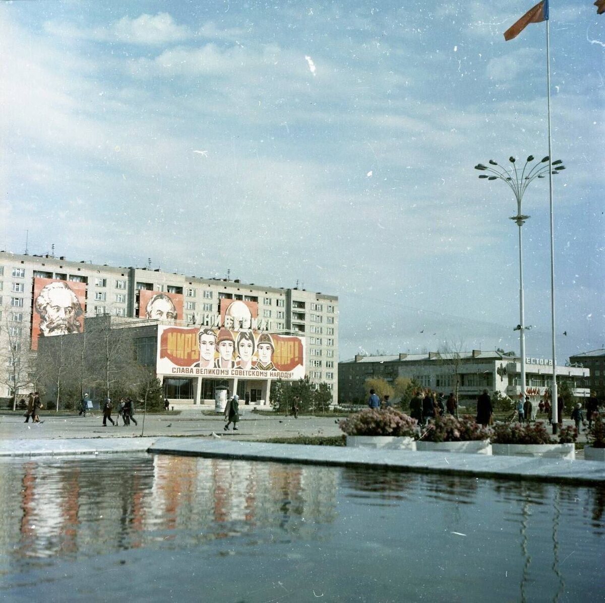 Возвращаем старую рубрику! «Архивное фото дня». Город Волгодонск, Площадь Победы в 80-х годах. С высоты открывается вид на ресторан «Дон» и универмаг.