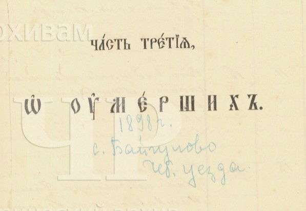 Село Байгулово. Метрическая книга об умерших за 1896-1909 гг. ГИА Чувашской Республики (ГИА ЧР), фонд № 557, опись № 8, дело № 59, стр. 234 скан. Метрическая книга, данная из Казанской Духовной Консистории в Богоявленскую церковь села Байгулова Чебоксарского уезда, для записи родившихся, браком сочетавшихся и умерших на 1898 год. Часть третия. О умерших. Стр. 240 скан. Апрель. № 16. 13 числа умер. 15 числа отпет. Чебоксарского уезда деревни Арзаматовой крестьянина Самуила Васильева Васильева сын Александр. 8 месяцев. От младенческой болезни. Погребен на приходском кладбище. Погребение совершил священник села Карачева Николай Эминентов. Псаломщик Алексей Добров. https://yandex.ru/archive/catalog/4596abe8-ce7c-4f96-92e5-dde5613495ce/240