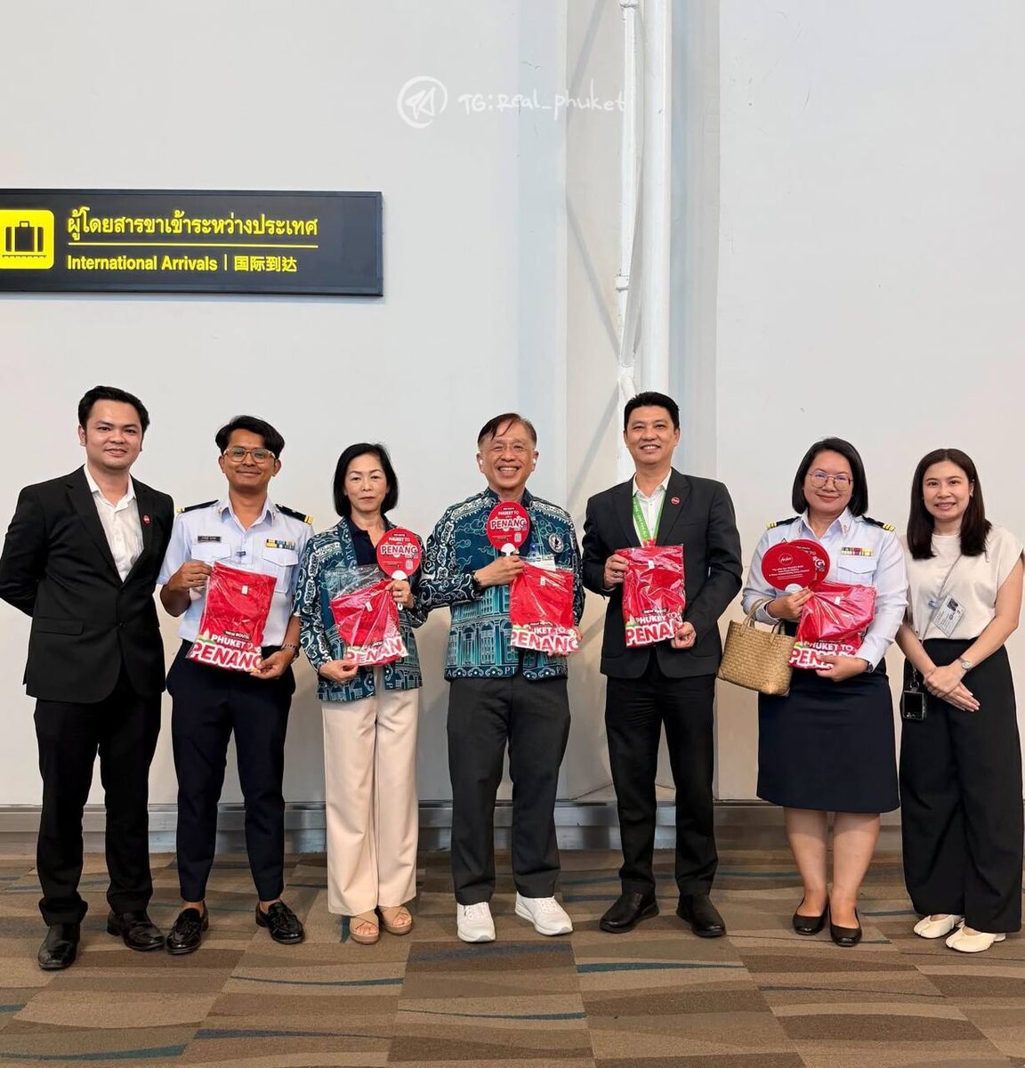 Президент ассоциации туристического бизнеса Пхукета Танет Тантипириякит вместе с представителями авиакомпании AirAsia приветствовали
