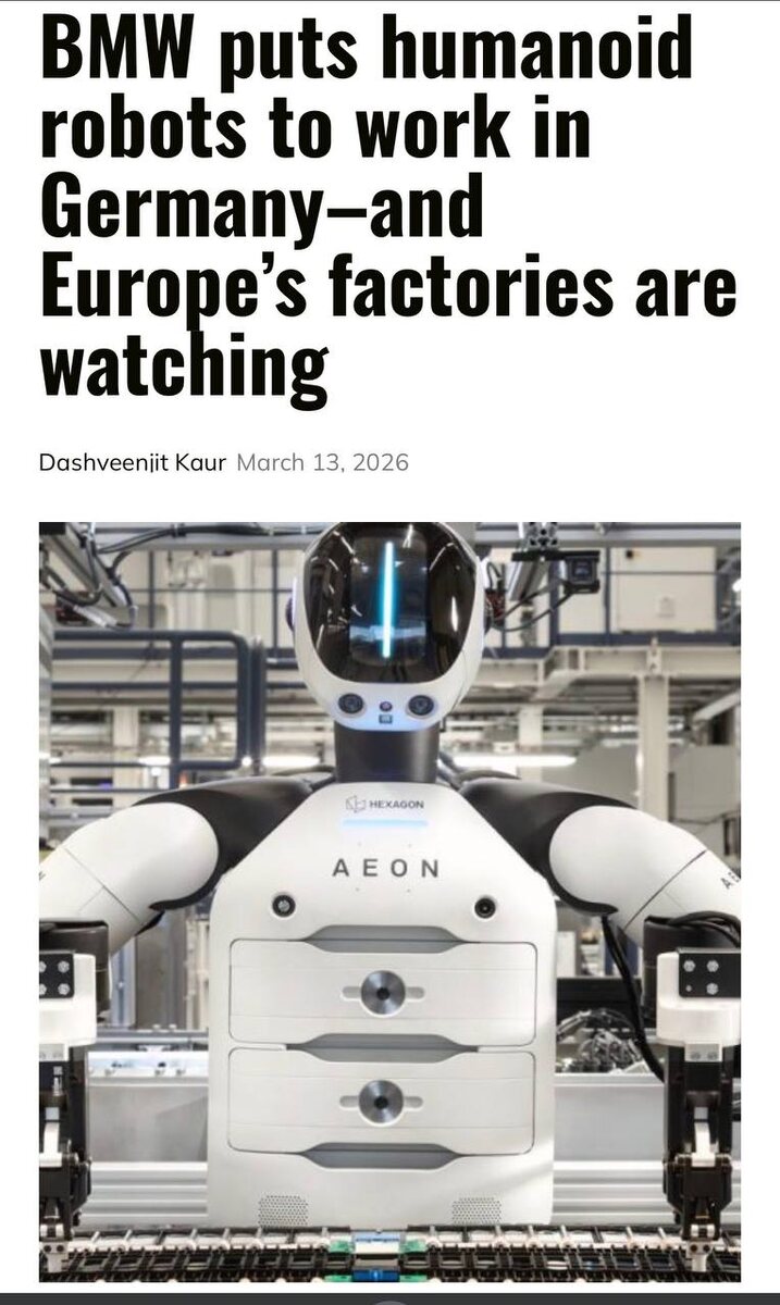 BMW запустила пилотный проект с использованием гуманоидных роботов AEON, разработанных Hexagon Robotics, на своем заводе в Германии. Это первая в Европе интеграция таких роботов в автомобильное производство А теперь представьте таких в пятерочке 😀 🤗
