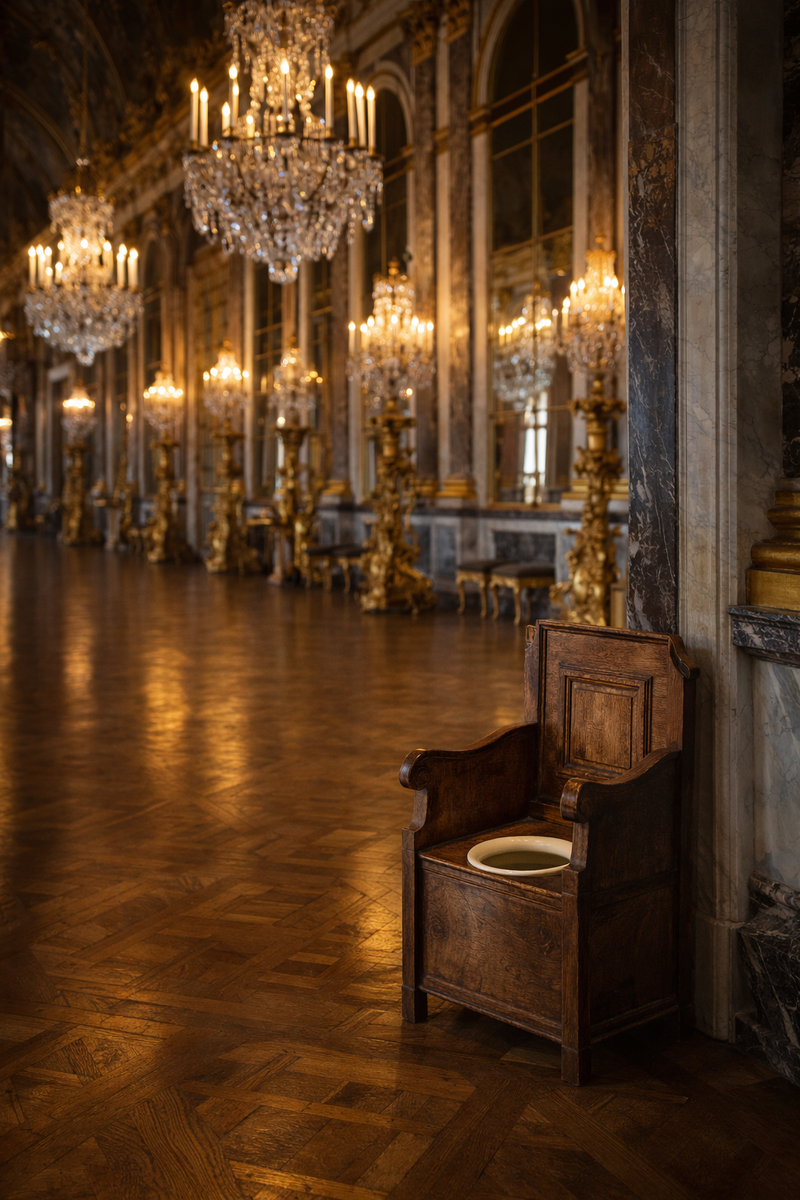 Архитекторы Версаля думали об анфиладах, галереях, перспективах и пространственной репрезентации власти. О канализации — нет. Первая относительно организованная система удаления нечистот появилась во дворце лишь в самом конце XVIII века, при Людовике XVI — и уже было слишком поздно для репутации монархии.