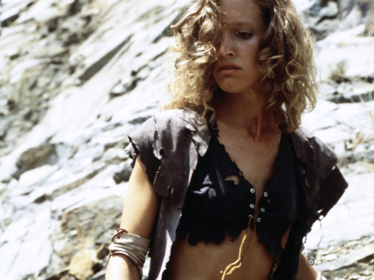 Упор тут сделан не на слове «динозавры», а на слове «ад». Бедняжка Линда Корвин, для которой эта роль стала первой и единственной в карьере, оказалась в преисподней, окружённая пластилиновыми чудовищами и разными тёмными личностями. Просто референсы этой конкретной геенны огненной нужно искать не в Библии, а на стыке «Воинов Бронкса», «Миллиона лет до нашей эры», «Конана-варвара» и «Властелинов вселенной».