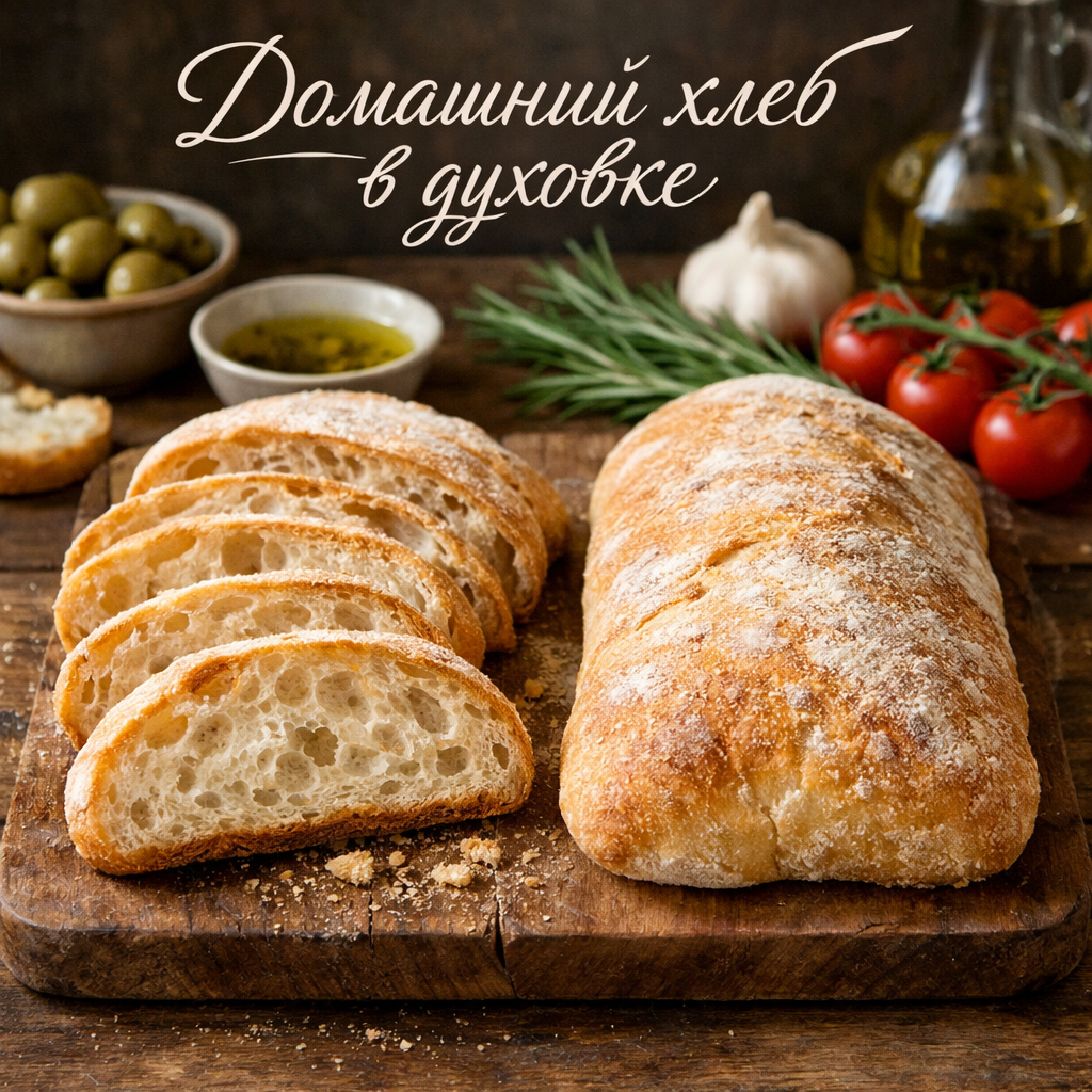 Чабата — это итальянский «тапочок» с пористой, воздушной структурой внутри и хрустящей корочкой. Главный секрет — очень влажное тесто и долгое брожение.