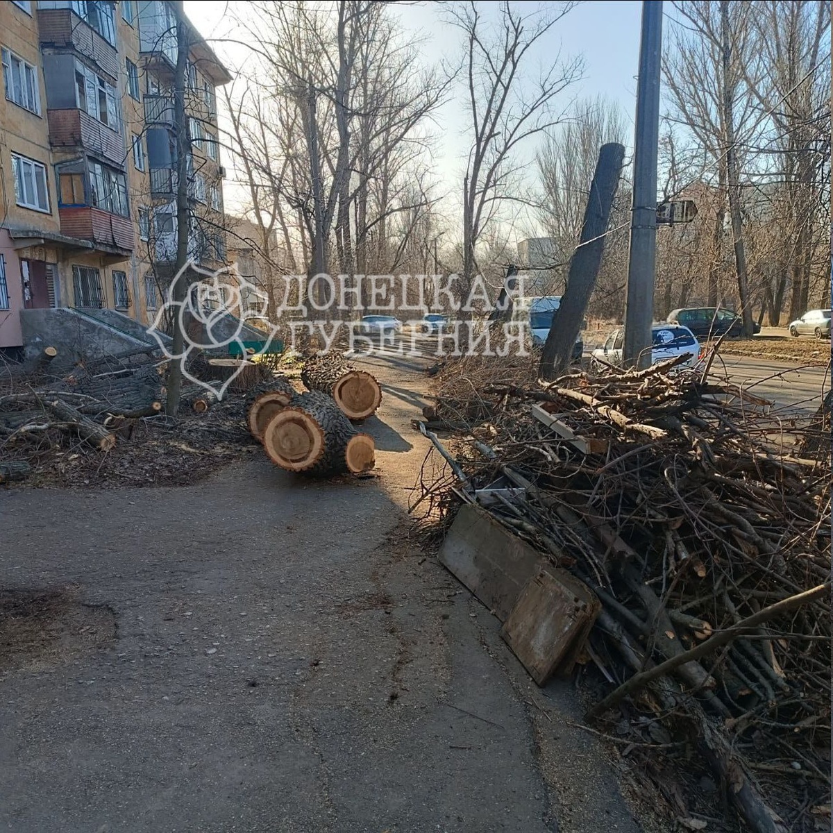 Донецк, Розы Люксембург 107, спилили деревья две недели назад и так и не вывезли