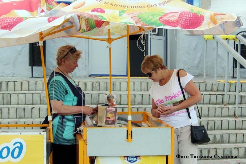 На улицах продавали мороженое из больших ларей: эскимо на палочке и мороженое в стаканчиках: сливочное, пломбир, фруктово-ягодное. К мороженому в картонном стаканчике продавщица выдавала деревянную палочку для еды. Рядом с ларем устанавливали мусорную корзину, чтобы покупатели бросали туда этикетку от мороженого.