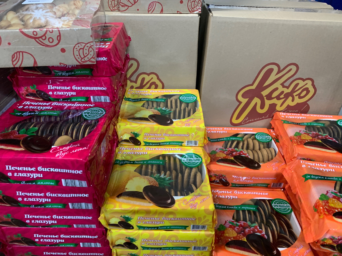 В продаже есть вкусные печеньки бисквитные с начинкой и в глазури. Они есть со вкусом малины, дыни и ананаса, клюквы и морошки. Масса 600 гр.