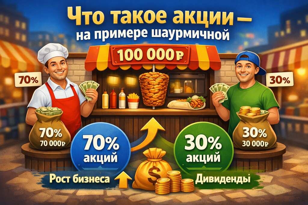 Как работают акции? Объясняю на примере шаурмичной