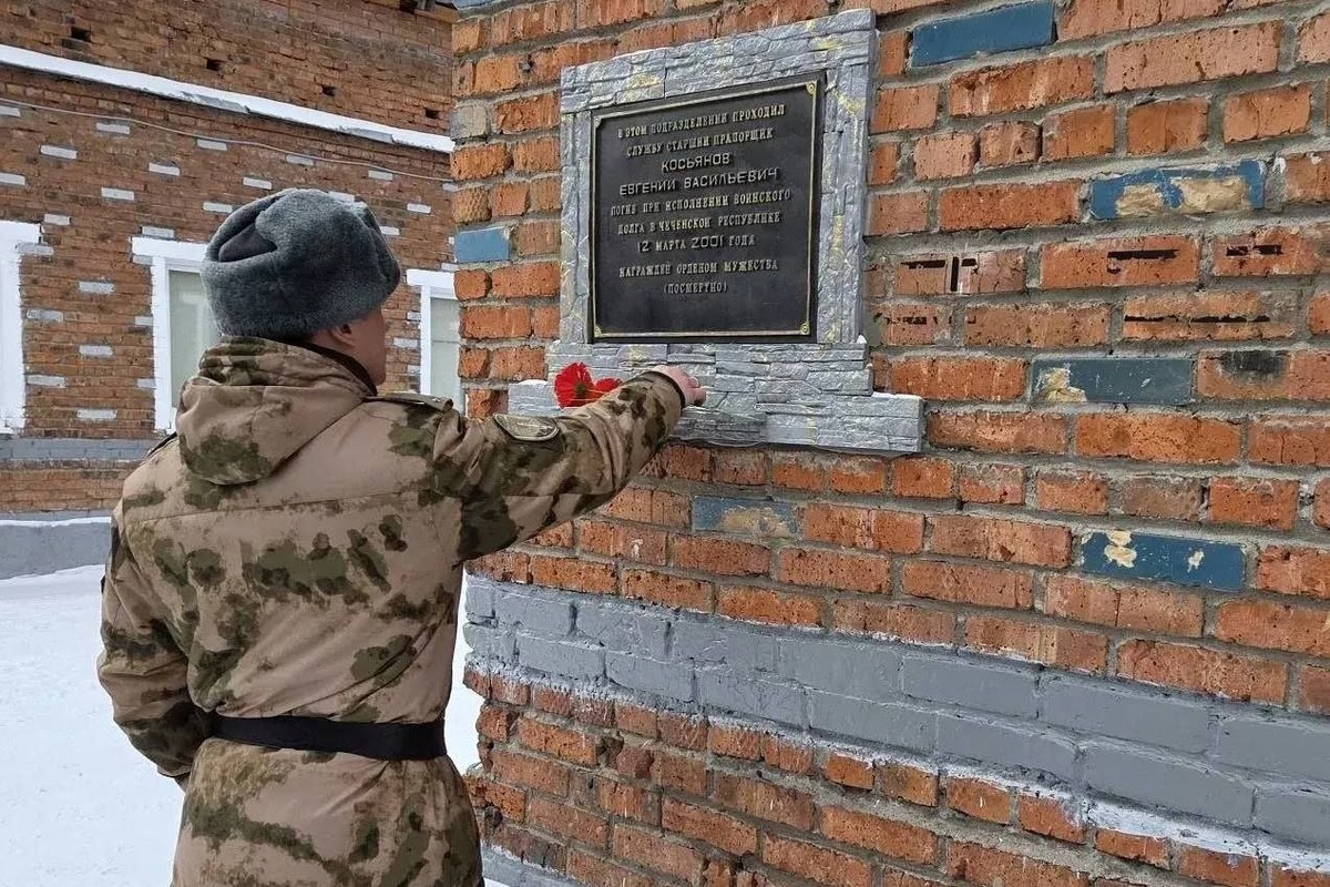 Военнослужащие северского соединения Сибирского ордена Жукова округа войск национальной гвардии Российской Федерации почтили память старшего прапорщика Евгения Косьянова, погибшего при выполнении служебно-боевых задач 25 лет назад. В памятный день личный состав воинской части отдал дань уважения мужеству и героизму боевого товарища, который навечно остался в строю. Военнослужащие войск правопорядка вспоминали боевой путь и этапы службы старшего прапорщика Евгения Косьянова, его личные качества и профессионализм, которые служат примером для молодого поколения защитников Отечества. Росгвардейцы возложили цветы к мемориальной доске и почтили память героя минутой молчания.