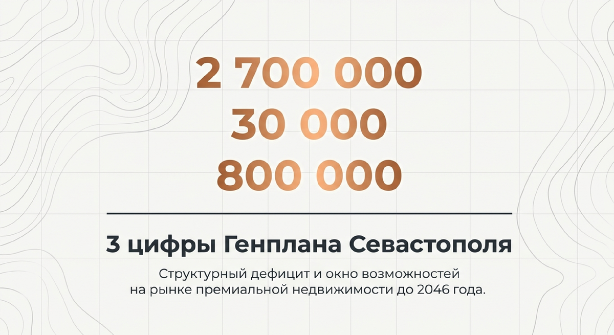 В феврале 2025 года был принят новый Генеральный план Севастополя — документ, который определяет развитие города до 2046 года. В нём есть три цифры, которые на самом деле объясняют всё.