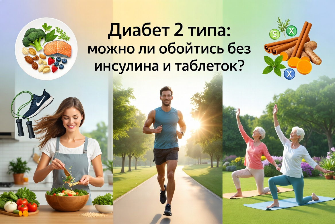 Диабет 2 типа стал настоящей эпидемией современного мира. Столкновение с этой болезнью пугает многих, ведь часто она требует постоянного приема медикаментов, а иногда и инсулина. Но есть ли альтернативы? В этой статье мы поговорим о том, можно ли обойтись без инсулина и таблеток при диабете 2 типа. Заболевание часто связано с нарушением работы инсулина, что и приводит к повышению уровня сахара в крови. Важно понимать, что контроль сахара — это не просто медицинская необходимость, а способ сохранить качество жизни и избежать серьезных осложнений. Для эффективного контроля уровня сахара необходимо: Правильное питание — это основа лечения диабета 2 типа. Многие пациенты задаются вопросом, возможно ли обойтись без инсулина и таблеток, изменив свой рацион. Отвечаем: да, здоровое питание может значительно снизить уровень сахара в крови. Физическая активность — еще один ключевой фактор, позволяющий контролировать диабет. Регулярные тренировки могут улучшить чувствительность к инсулину, что по