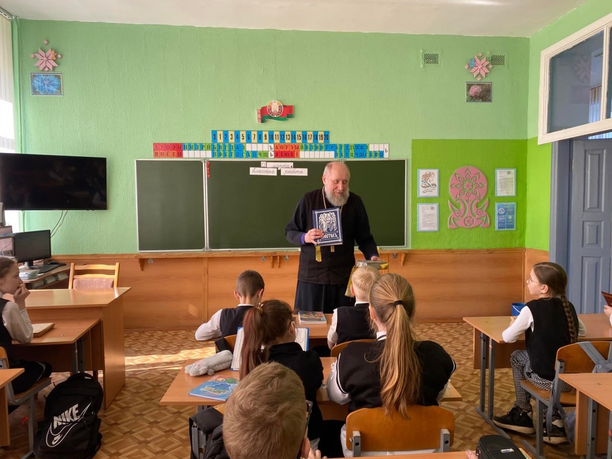 Лошница Борисовского района иерей Александр Лукьянович посетил ГУО «Лошницкую гимназию» и провел с учениками 4 классов беседу ко Дню православной книги. Отец Александр рассказал ребятам, что праздник приурочен к дате выхода первой печатной книги на Руси – «Апостола» изданной первопечатником Иваном Федоровым 14 марта 1564 года. Во время беседы батюшка познакомил детей с богослужебными книгами изданными в конце XIX начале XX века, которые отец Александр привез с собой, рассказал ребятам о назначении богослужебных книг и их значимости в жизни храма и православных верующих, а также объяснил – насколько важна книга для каждого человека в течение всей его жизни. Ребята с большим интересом рассматривали книги, читали, задавали батюшке вопросы.