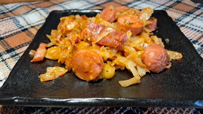 Что может быть проще и скучнее капусты, которую потушили с сосисками? Мало что.