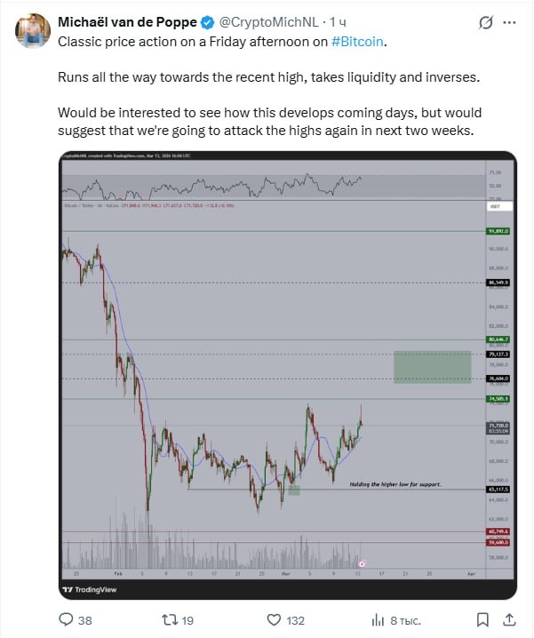 Классика пятничного прайс экшена на битке.