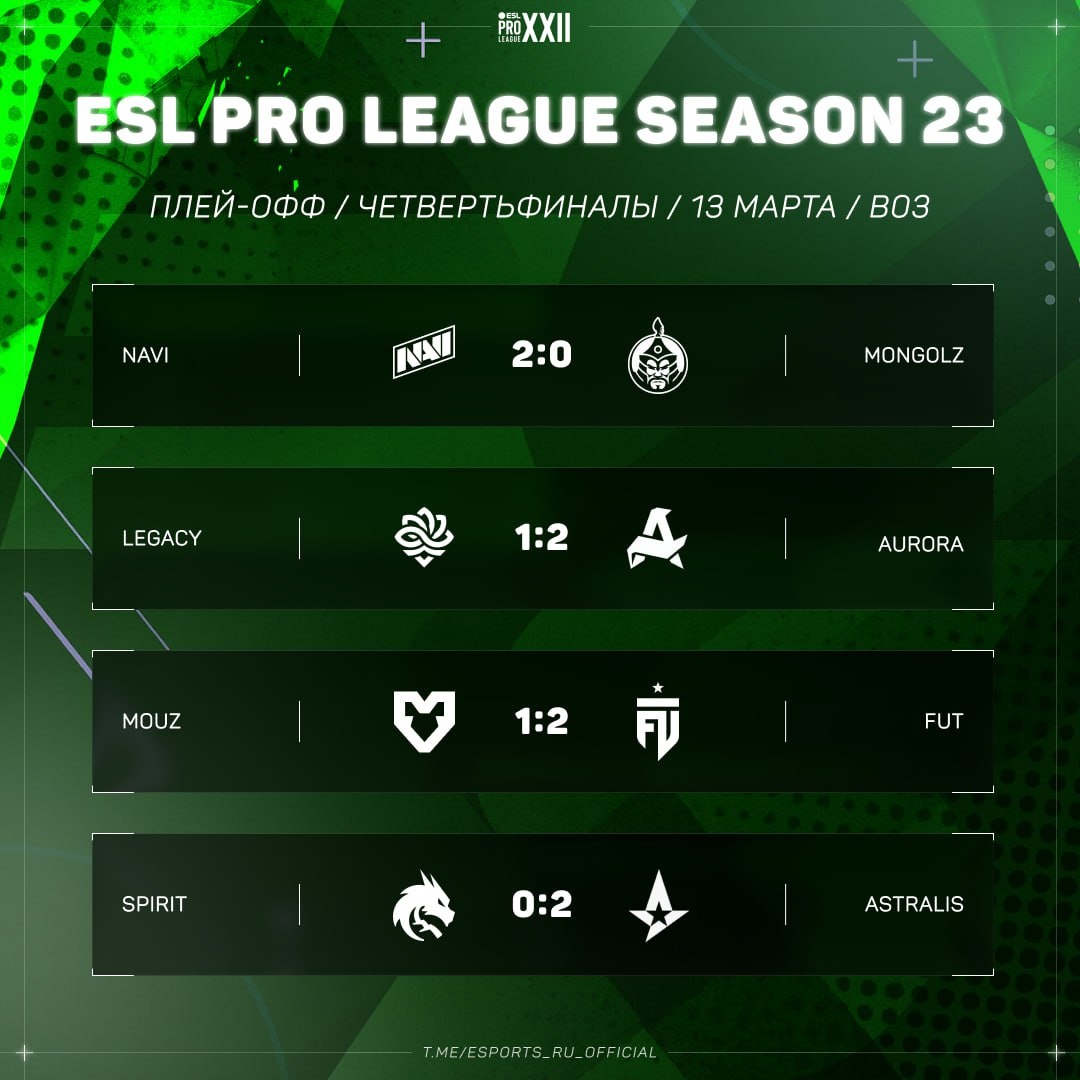 📌 Итоги четвертьфиналов ESL Pro League S23