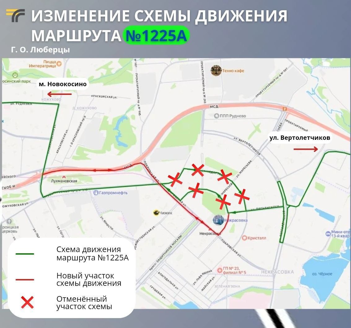 С 14 марта (сегодня) изменилась схема движения автобусов по маршруту № 1225А «Люберцы (ул