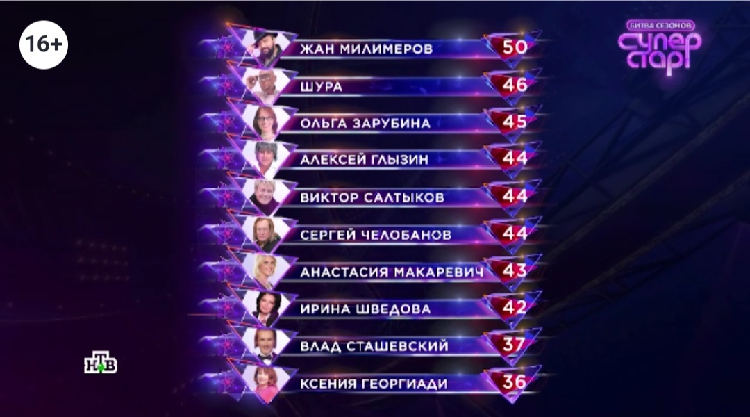 А на последней строчке Ксения Георгиади, в следующем выпуске она снова под угрозой вылета.