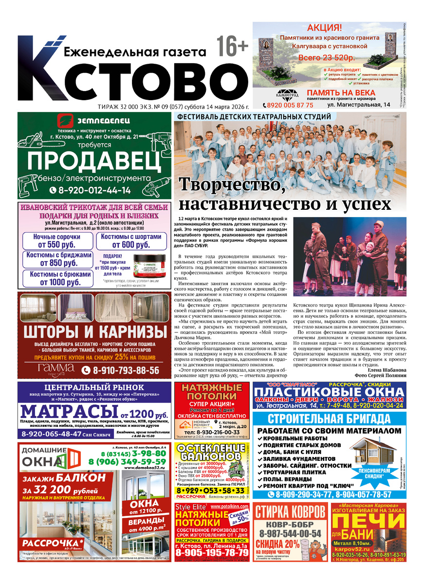 Газета "Кстово" № 57 от 14.03.2026 г.