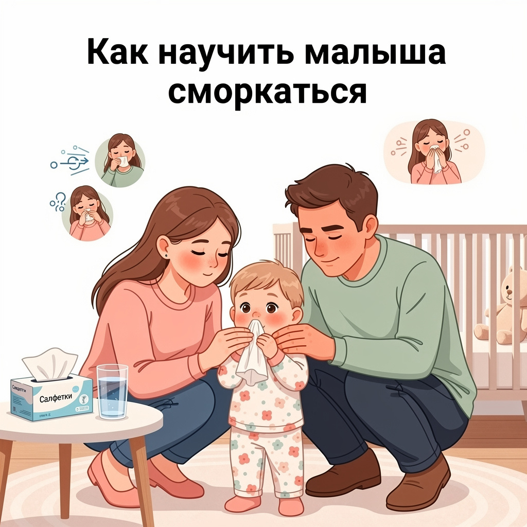 Многие родители сталкиваются с ситуацией, когда у ребёнка насморк, а сморкаться он ещё не умеет. Это нормально: навык требует координации дыхания и понимания самого действия. Обычно дети осваивают его постепенно. Ниже несколько простых советов, которые помогут научить малыша сморкаться спокойно и без давления. Можно использовать простые игры: 1 «Фыркать как ёжик» 2 «Запотеть зеркало носиком» 3 «Сделать ветер носом» Такие упражнения помогают ребёнку почувствовать, как работает выдох через нос. Дети лучше всего учатся, когда видят, как делают взрослые. Покажите медленно: После этого предложите малышу повторить. Хороший игровой способ — чашка с маленькими бумажками. Что нужно сделать: 1. нарвите в чашку мелкие кусочки бумаги 2. покажите ребёнку, как выдувать их носом из чашки 3. затем предложите малышу попробовать самому. Когда ребёнок видит, как бумажки разлетаются от выдоха, он быстро понимает принцип. Такой игровой формат очень нравится детям, вызывает у них смех и азарт, поэтому малы