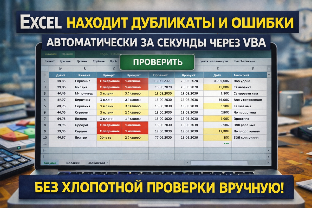 Excel сам находит дубликаты и ошибки — VBA-макрос для полной проверки таблицы. Подробно разбираем, как в Excel через VBA автоматически находить дубликаты, пустые значения и проблемные строки. Готовый макрос, разбор логики и реальные сценарии для рабочих таблиц.