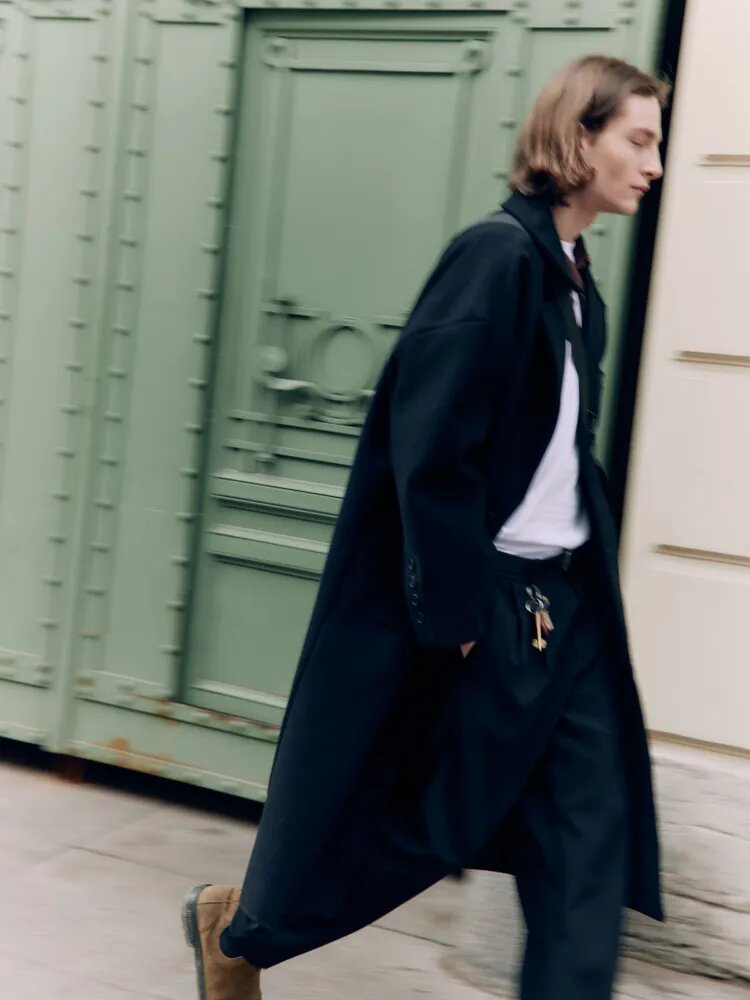- Пальто‑оверсайз из шерсти и полиэстера с удлинённым силуэтом. Оно подчёркивает мягкую O‑форму и спущенные плечи, о которых говорят модные эксперты. Купите пальто на Ozon: Palto мужское длинное оверсайз из коллекции 2024.