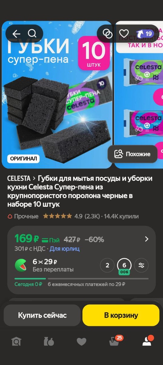 Губки для мытья посуды и уборки кухни Celesta Супер-пена из крупнопористого поролона черные в наборе 10 штук