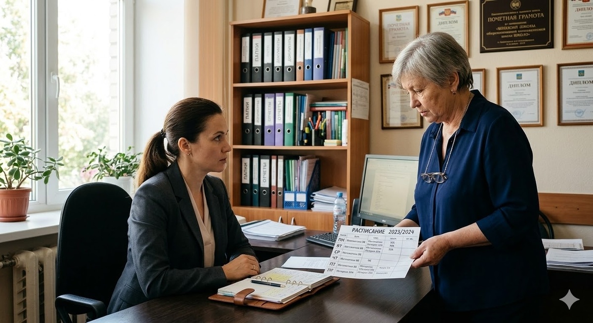 Директор смотрела на неё секунд пять, не больше. Потом открыла ящик стола, достала листок с расписанием и протянула через стол.