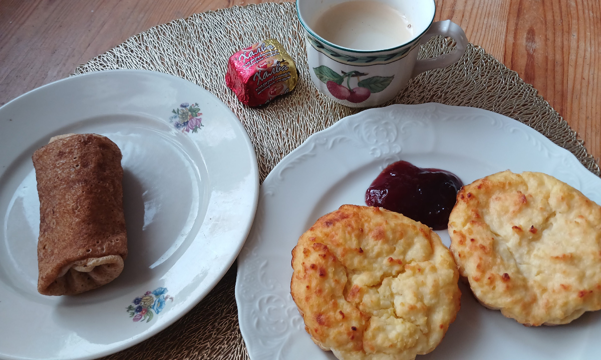 В марте питаемся на 250 руб в день на человека. Сумма в месяц на питание - 7 750 руб на одного и 15 500 руб на двоих. Сегодня день рождения у старшего сына. Но мы все на работе, поэтому был только праздничный ужин. На завтрак пшенно-творожные запеканки с джемом и блинчик с куриными желудочками. Плюс чашка кофе с конфетой На обед доедали то, что было в холодильнике. Мне достались запеканка и блинчик. После обеда выпила чашку кофе с сыром бри и конфетой На ужин приготовила закусочный Наполеон и бутерброды с икрой. Наполеон в этом году делала не из готовых коржей, а сама пекла коржи из готового слоеного теста. Торт получается более жирным. И вообще он очень сытный. Из пачки теста сделала 2 тортика. Съели мы только один. И потом еще чай был с тортом. Торт пекла накануне уже в 11 часов вечера, поэтому самый простой - кексовое тесто, крем из сливок и творожного сыра, клубничная прослойка. Для украшения - свежая клубника. Меню год назад Закусочный Наполеон