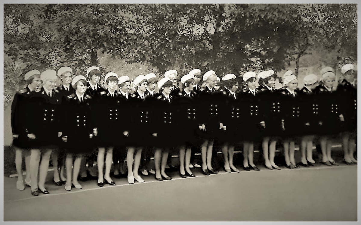 А как же красиво они смотрелись в своей парадно-выходной форме, в черных кителях и юбках, вкупе с белыми рубашками и белыми же беретами на головах. На том, крайнем, построении, в день принятия ими воинской присяги.