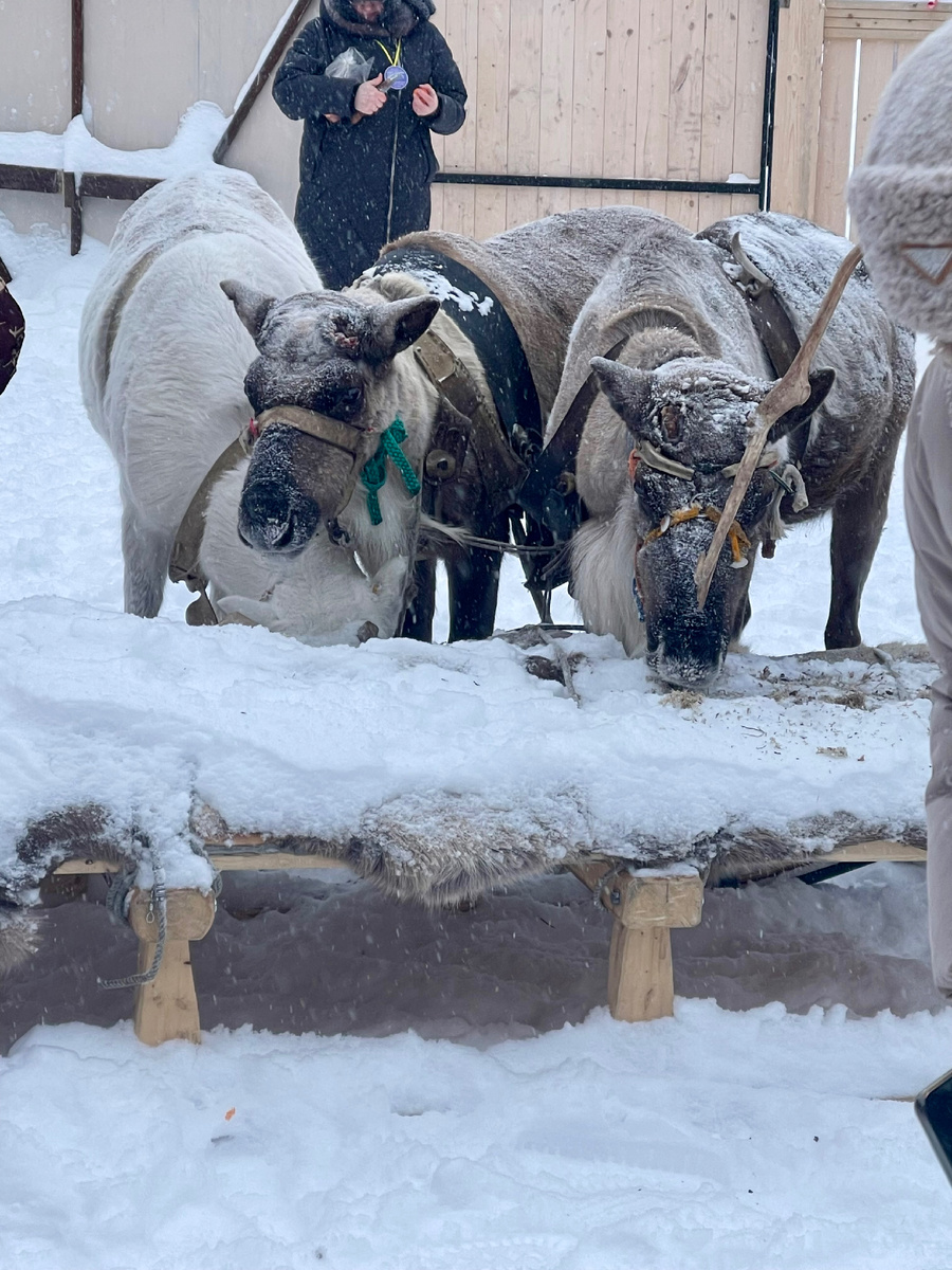 - катание на оленьей упряжке - снег из-под копыт, ощущение сказки