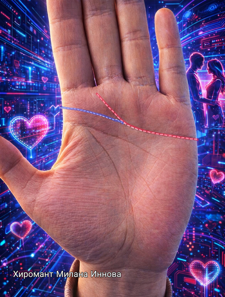🖍️Особенно интересен тот факт, что расположение начала линии относительно холма Юпитера (расположенного под указательным пальцем) может многое сказать о предпочтениях человека в выборе партнёров. Так, линия, начинающаяся ближе к этому холму, ассоциируется с любовью к сильным и уверенным партнерам, стремящимся к лидерству и власти.