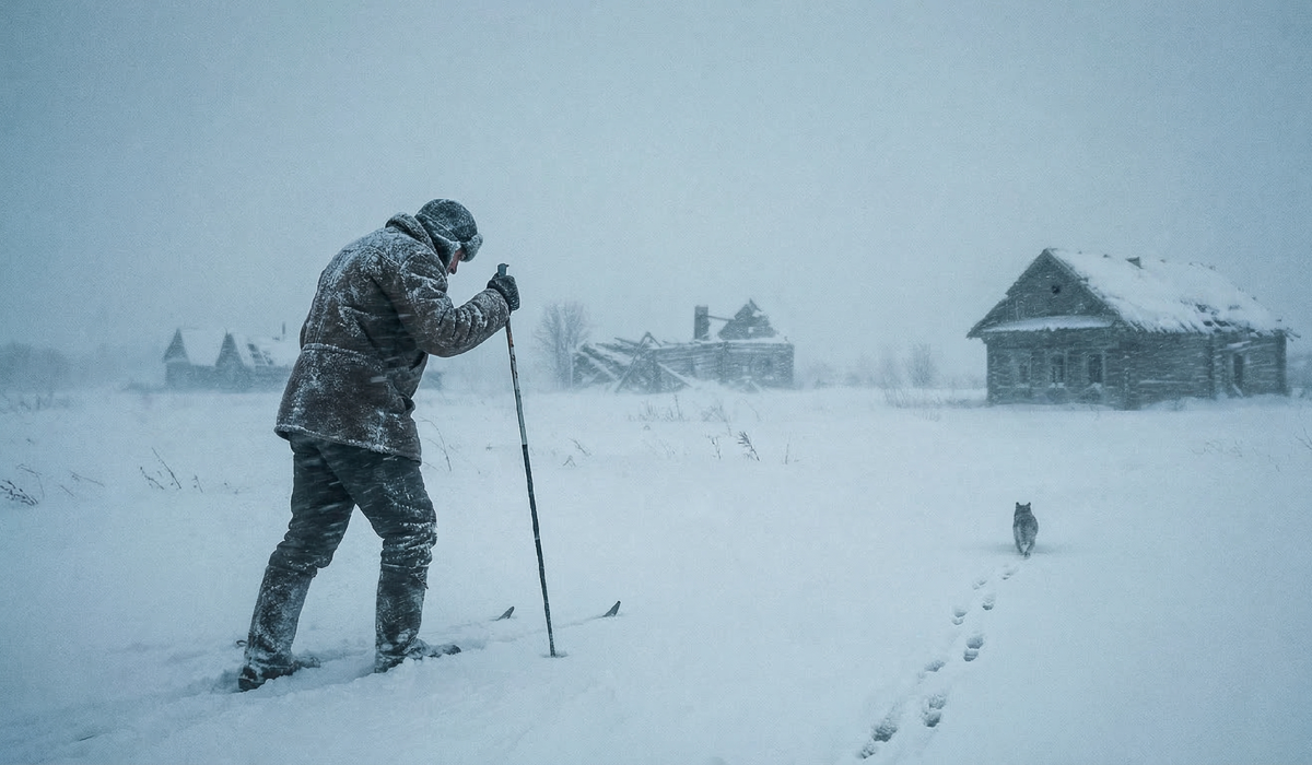 Внезапно сквозь вой ветра и белую пелену проступили какие-то темные силуэты. Алексей, собрав последние силы, двинулся к ним. Это были постройки. Черные, покосившиеся избы с провалившимися крышами и пустыми глазницами окон смотрели на него сквозь метель.