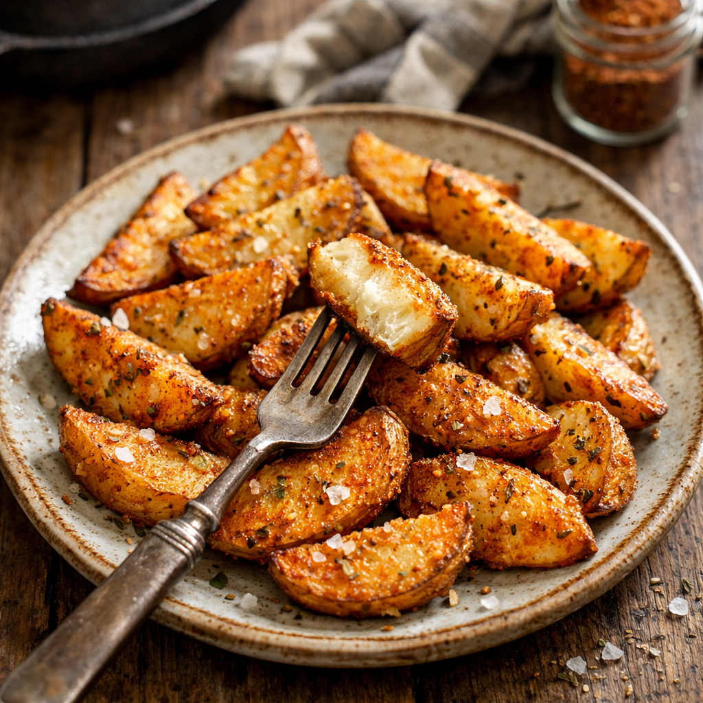 Аккуратно выкладываем наше золотистое сокровище на красивую тарелку. Вы только послушайте этот легкий звук, когда подцепляете кусочек вилкой — он реально хрустит! А внутри прячется обжигающе горячая, рассыпчатая, нежная мякоть. Аромат чесночка, специй и сливочного масла просто сводит с ума, мгновенно собирая всю семью на кухне без всяких приглашений.