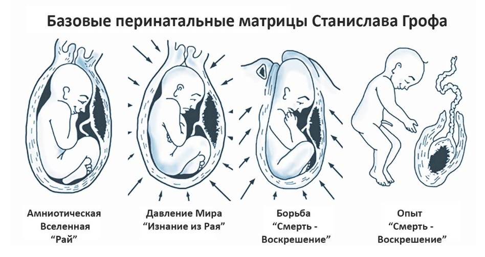 Станислав Гроф выделил четыре основные перинатальные матрицы (БПМ — базовые перинатальные матрицы). Каждая из них соответствует определенной стадии родов и связана с определенными эмоциональными, физическими и даже мифическими (архетипическими) переживаниями.