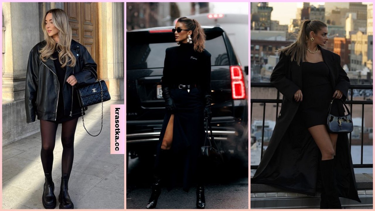 Роскошно и стильно: 50+ модных луков в черном на весну 2026
