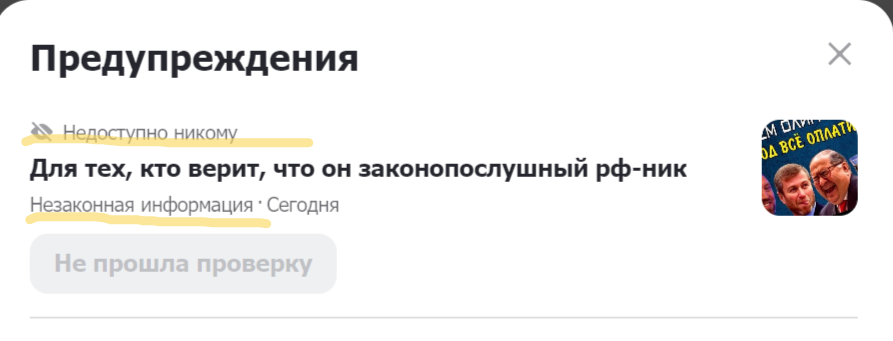 После моей жалобы в техподдержку о разблокировке статьи от СПАМного ярлыка - Дзен вообще статью ЗАБЛОКИРОВАЛ с такой формулировкой: