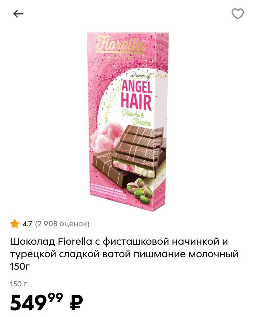 И совсем не пожалела! Шоколад «волосы ангела» появился на фоне популярности дубайского шоколада. Здесь не только фисташковый крем, но и «волосатая» сладость турецкой кухни — пишмание. В общем, для сладкоежек самое то, мне было очень вкусно. Теперь с опаской прохожу мимо этой шоколадки, но не из-за ценника, а из-за риска съесть всю разом! 🍫 Да-да, я живу ещё в 2025, где Дубай ассоциировался не с войной, а с шоколадом... Я в ВК Мой канал в MAX