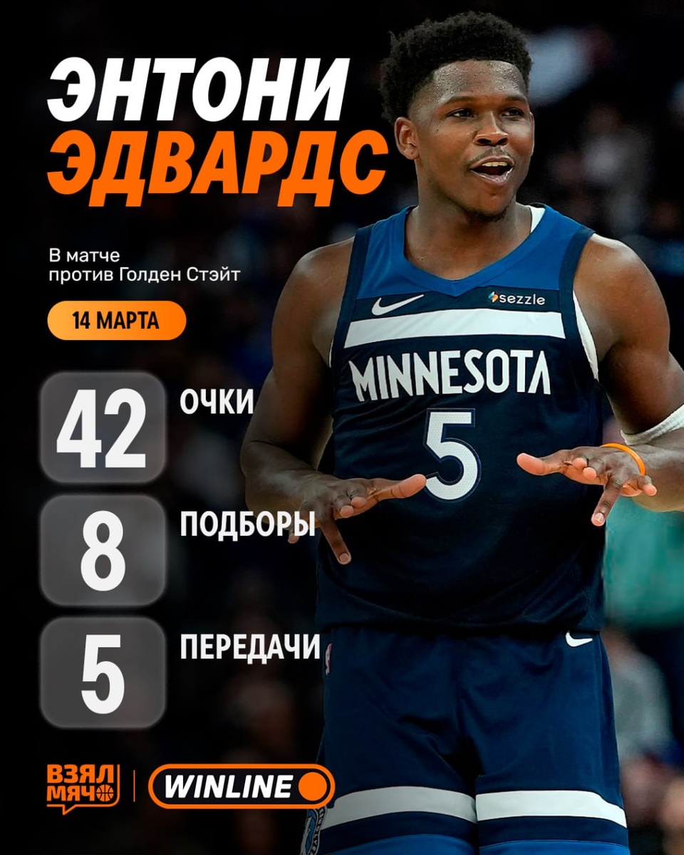 » Сегодня звёздный защитник помог команде прервать серию из 3 поражений подряд. У него 42 очка, 44% из-за дуги, 8 подборов, 5 передач, 1 перехват и 1 блок-шот за 37 минут. Энт провёл 10-ю игру с 40+ очками в этом сезоне, уступая по таким матчам только Луке Дончичу (11). 🏀 ПОДПИШИСЬ — ЗДЕСЬ ЖИВЁТ БАСКЕТБОЛ!