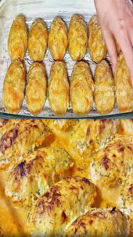 - Плотно накройте форму фольгой. Запекайте при 180°С в течение 40 минут. Снимите фольгу и готовьте еще 10–15 минут, чтобы верхушки подрумянились, а соус немного выпарился и загустел.